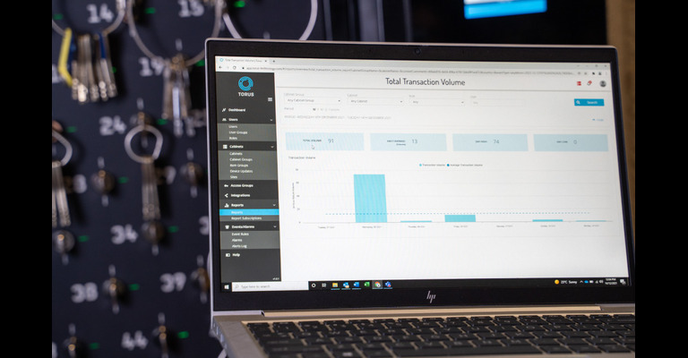 Managers can view live key status, user activity, and cabinet conditions through a dashboard via laptop or mobile device.